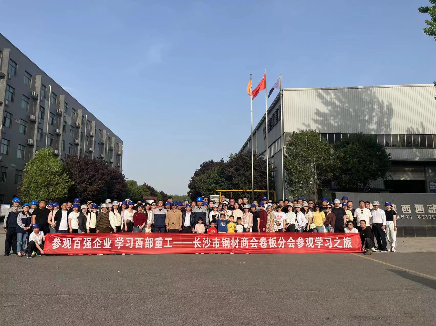 2023年4月15日下午,长沙市钢材商会卷板分会一行118人,在星空线上官网(集团)官方网站总经办总经理助理岳东风的带领下莅临陕西西部重工有限公司进行参观。我公司对其来访表示热烈的欢迎,由副总经理丁嘉奕、杨朋涛、财务部部长王红、综合部部长兼供管部部长谭义清、安环部副部长陈广利等进行了热情的接待。