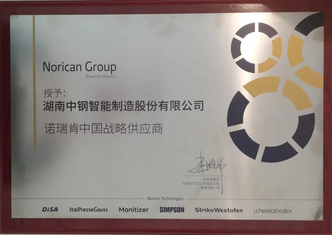携手并进、合作共赢,湖南中钢荣获诺瑞肯中国“战略供应商”称号