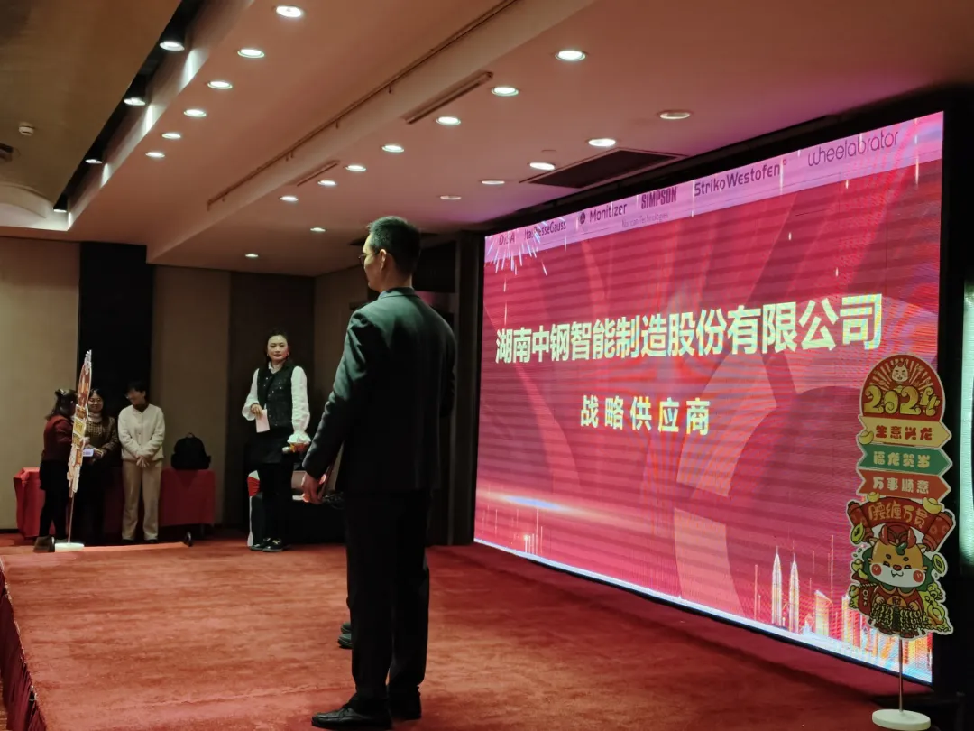 【概要描述】1月25日诺瑞肯中国供应商大会上,湖南中钢被授予诺瑞肯中国“战略供应商”,总经理岳文超代表集团现场上台领奖。