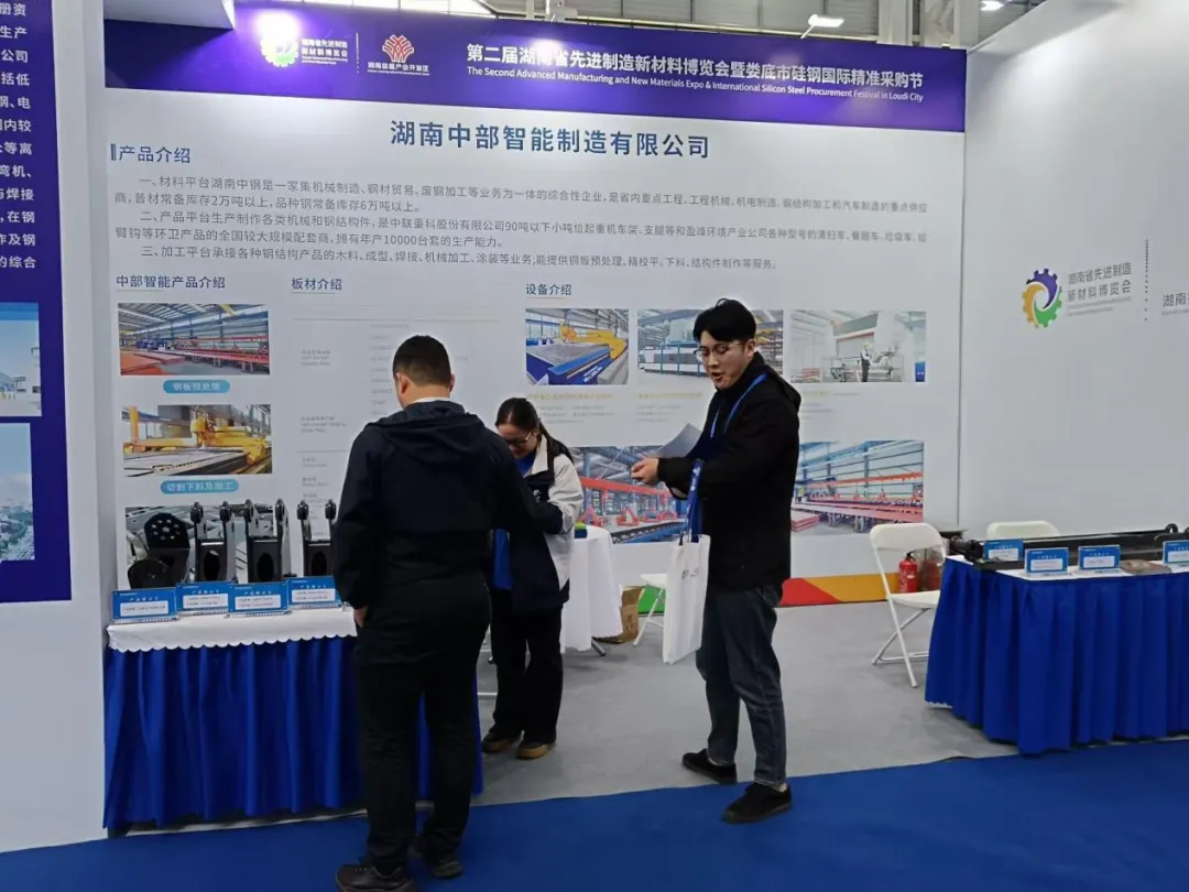 2024年11月21-22日,第二届湖南省先进制造新材料博览会暨娄底市硅钢国际精准采购节在娄星产业开发区盛大举行。大会设置了先进材料综合展区、“三钢”产业展区、“三电”产业展区、工程机械展区、农业机械展区五大展区,布展面积20000㎡。来自20多个国家和地区的500多名采购商和近300家参展企业代表云集于此。本次博览会以“融通产业链 赋能材料谷”为主题,是国内首个以“硅钢产业”为主题的精准对接活动;外向度更强,大会邀请了卢旺达、坦桑尼亚驻等使领馆官员出席,并向多个国家的150多位专业采购商发出邀请,超100位专业采购商参加展会。湖南中部智能制造有限公司作为经开区主要代表企业之一入驻本次博览会。