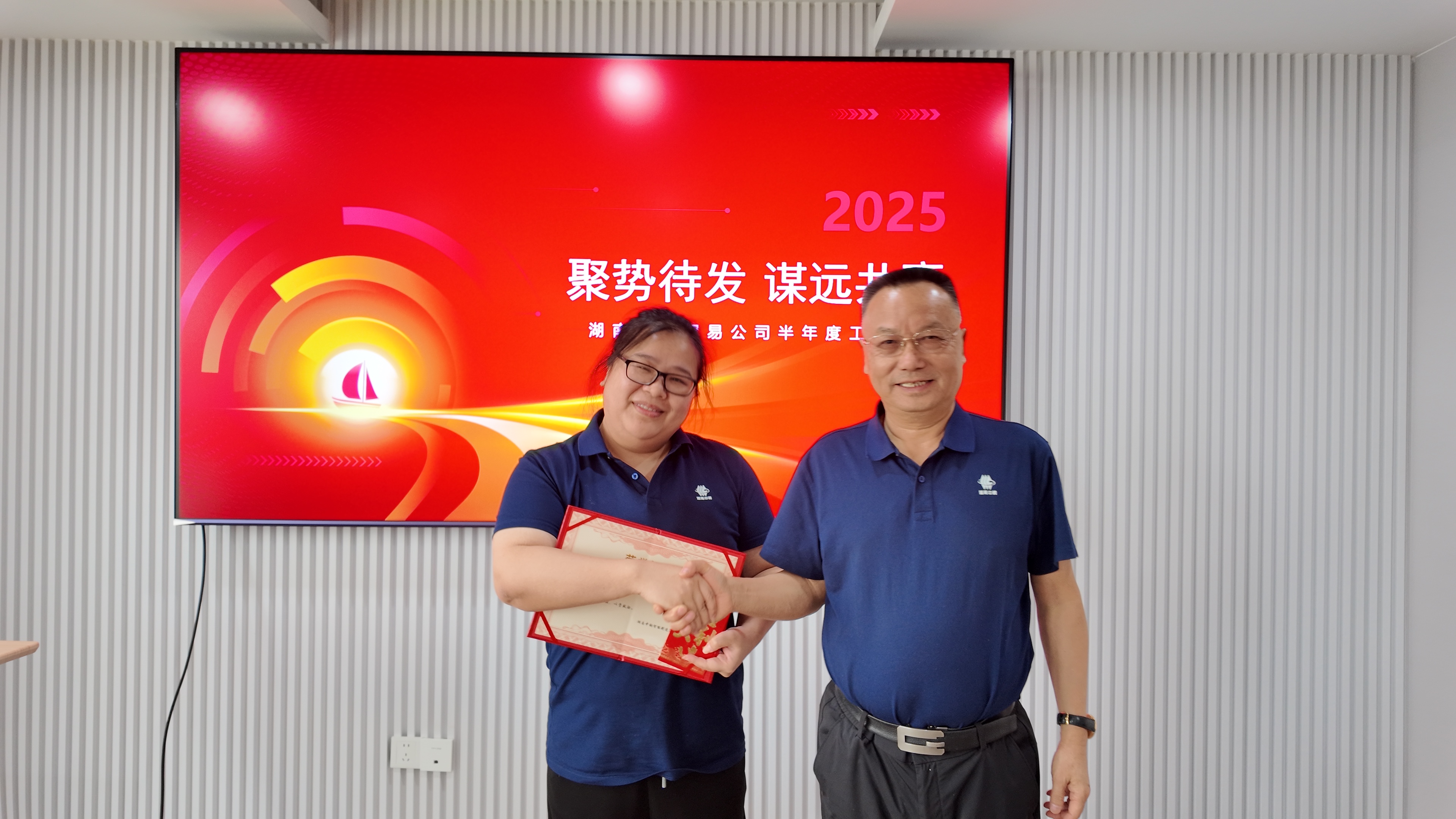 会议过程中,集团与会领导对贸易公司上半年表现突出的先进个人和团队进行了表彰。希望全体员工以先进为榜样,奋发向上,为达成全年目标共同努力。