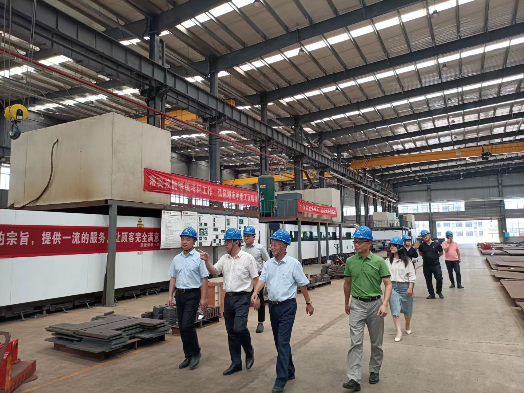 【概要描述】7月22日上午,湖南大学工商管理学院党委副书记易洪波、湖南大学MBA/EMBA教育管理中心副主任李遵号、湖南大学工商管理学院政企服务中心副主任蔡胜以及多位校友代表一行到湖南中钢智能宁乡工业园区能进行校友企业访问交流活动。