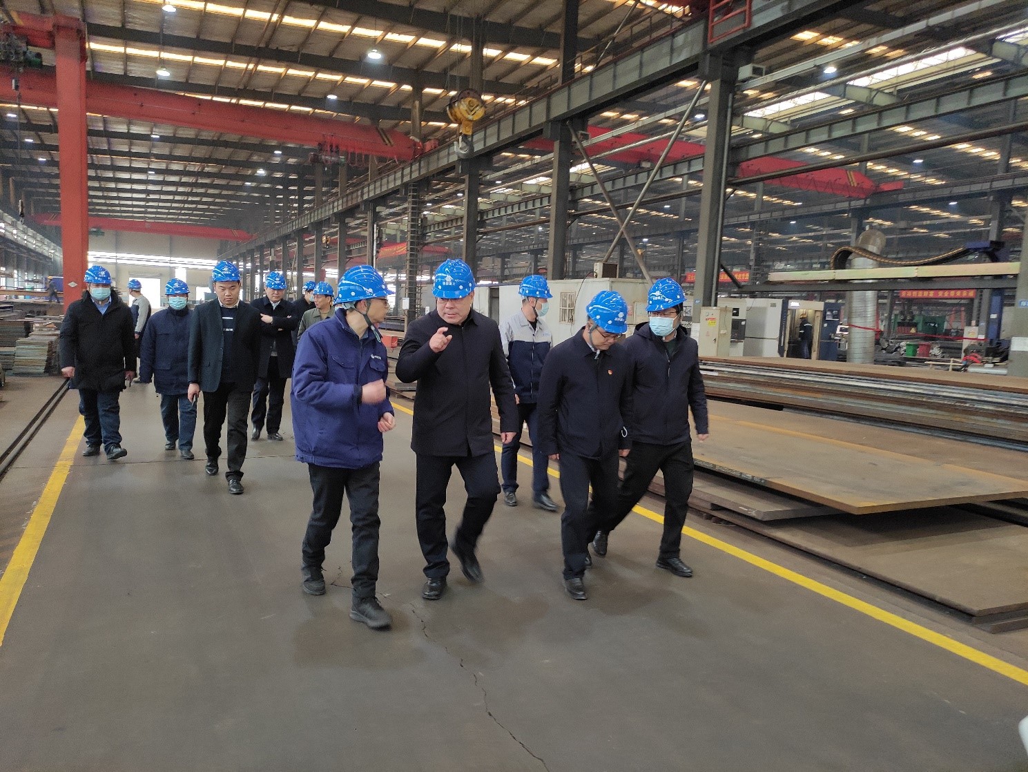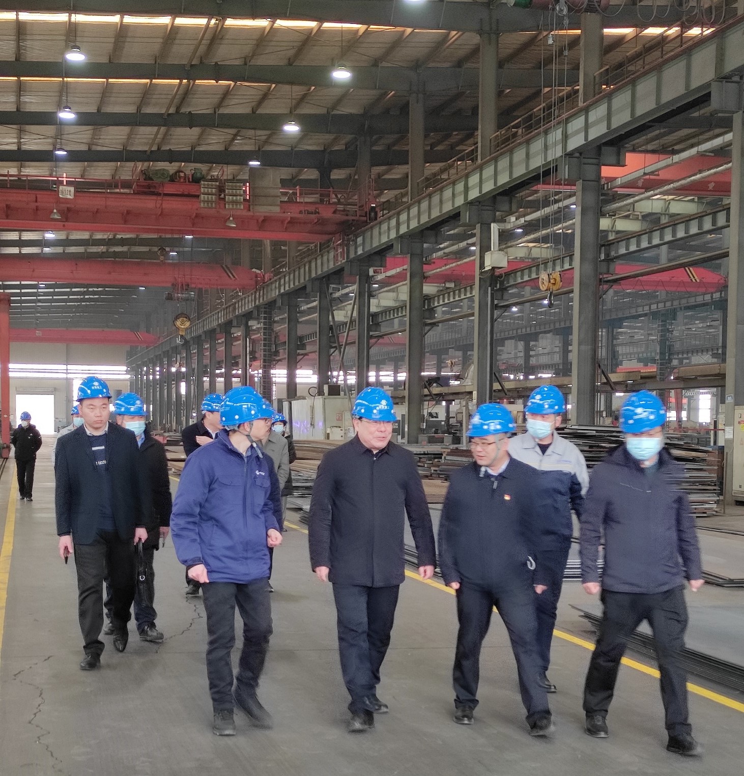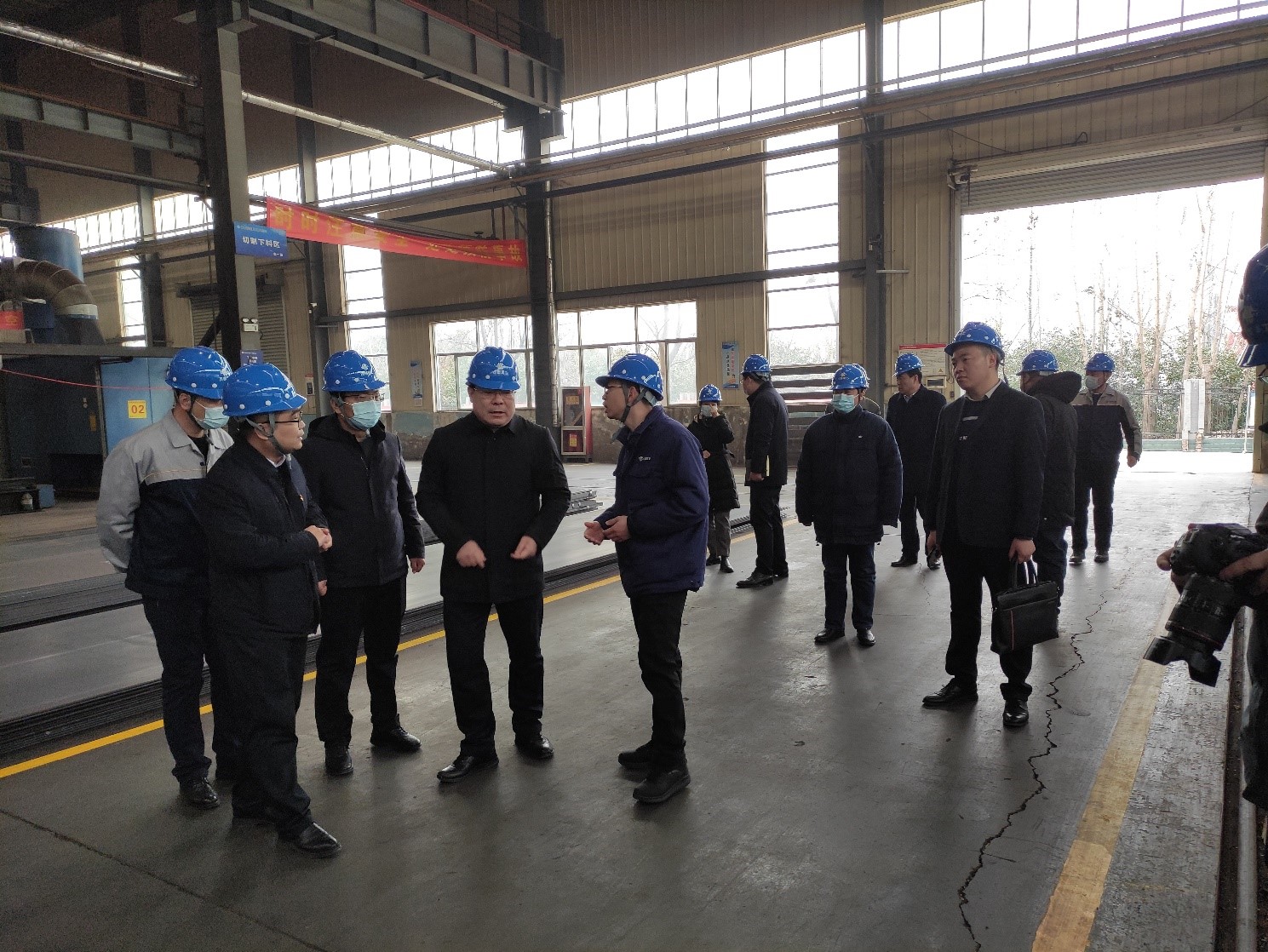 【概要描述】2023年2月2日上午,渭南市高新区主任蔡军、副主任白雪亮及高新区管委会相关部门领导一行莅临陕西西部重工有限公司进行调研。公司副总经理丁嘉奕、杨朋涛、综合部陈广利、制造部谭义清等热情接待来访领导。